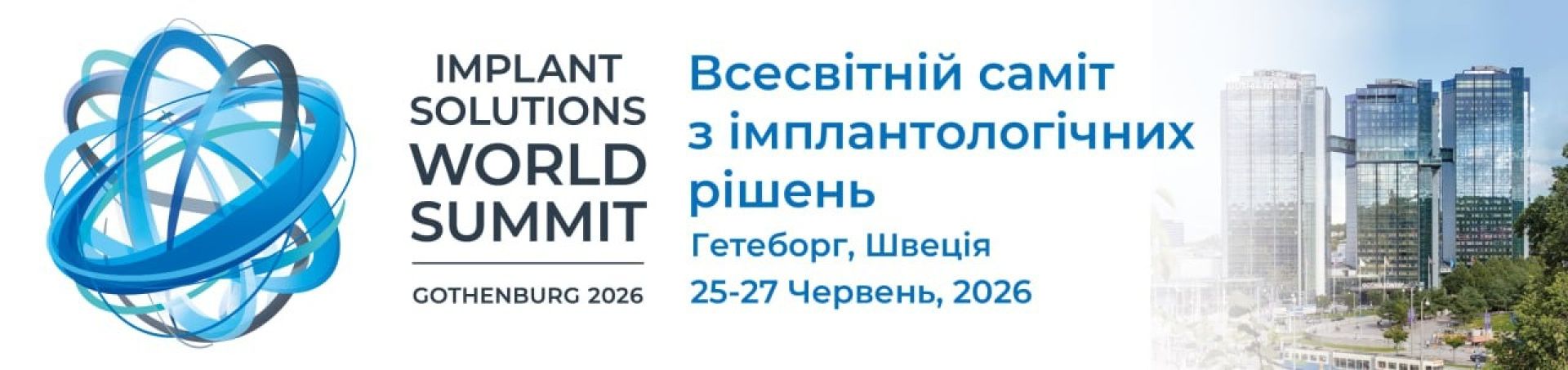 25–27 червня 2026 року Гетеборг (Швеція) стане центром світової стоматології. Подія об'єднає лікарів-імплантологів, ортопедів та зубних техніків для обговорення інновацій та майбутнього галузі раз..