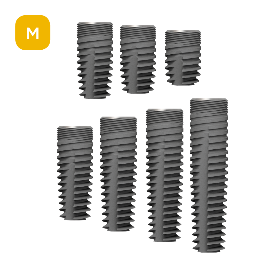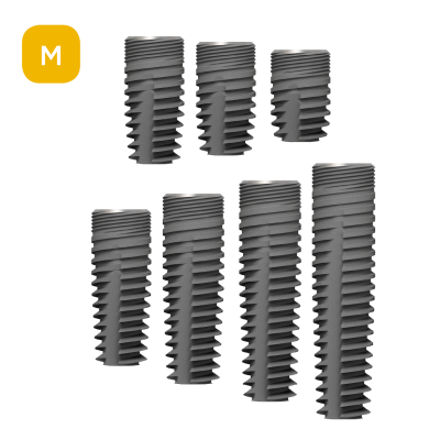 Імплантати доступні в різноманітному діапазоні діаметрів і довжин для всіх показань, включаючи ситуації з обмеженим простором та/або кількістю кісткової тканини